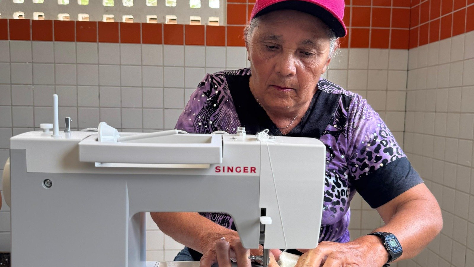 Na ocasião, as aprendizes confeccionaram uma bolsa customizada com técnicas do bordado, método apresentado às participantes em aulas anteriores. As alunas também puderam aprender diferentes técnicas de forragem de botões e aplicação de zíperes. O cronograma geral do curso envolve conhecimentos básicos da máquina de costura, modelagem, costura criativa e artesanato.
